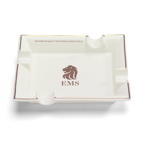 The EMS White Ceramic Cigar Ashtray is a sleek and elegant accessory designed for cigar enthusiasts who value both style and functionality. Crafted from high-quality ceramic, this ashtray features a smooth white finish, offering a clean and sophisticated look that complements any smoking lounge, home, or office setting. Its glossy surface not only enhances its refined appearance but also ensures durability and easy maintenance.