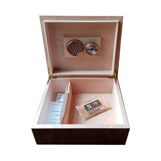 This humidor comes with a free 60g 72% Xikar Boveda seasoning pack to put in to your humidor. Leave it in for a couple of days before adding your cigars to build up the humidity and then remove. From then on you can use simply the built in humidity to keep your cigars in perfect condition. n n