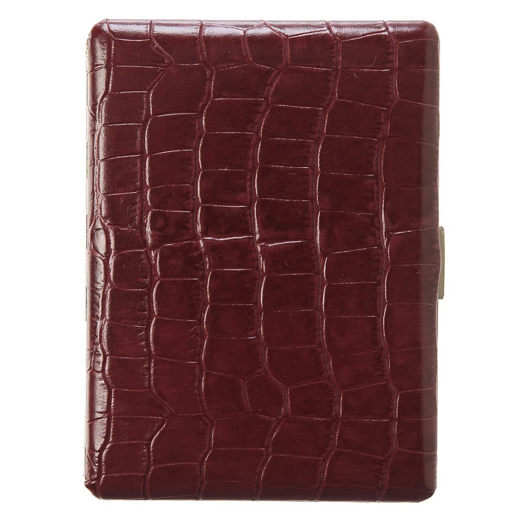 This elegant cigarette case from Tsubota Pearl can hold 9 superking cigarettes, or 12 regular cigarettes. These fine cigarette cases are made in Japan using Croco pattern leather and brass.