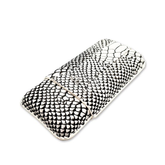 Luxury Snake leather 3 finger telescopic cigar case. Master crafted using the finest snake leather. Designed with a modern look and a classic style for all cigar aficionados. Beautifully created to hold up to 3x 60 gauge cigars to meet all cigar lovers needs. The internal walls of the case are lined with our signature, highly wear resistant, red velvet to protect your timeless smokes. Main body is sufficiently flexible yet ridged to hold and protect your cigars. Comes in a gift box.